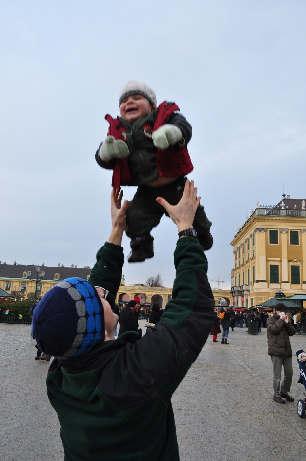 There's nowhere like home for the holidays--except when you have to deal with a jet-lagged toddler! After we had decided to spend Christmas with the Stocketts in Vienna, we opted for the direct flight option. All systems were a go as we headed out of our new apartment on the 23rd, a few minutes late in typical Chapman form, but nothing to worry about. The elevator opened to four maintenance men water pipes in hand. We loaded ourselves on with Rawly in his stroller and our two bags. The ten flights proved to be the typical awkwardness that generally ensues when you know that you're in close confines with foreigners. Then it happened. The elevator plummeted--so maybe it was only an inch or two--but that difference cost us catching our flight. Luckily a nice lady helped us get on a later flight and we were in Vienna by evening!